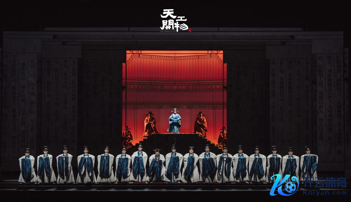 剧照 这部以《天工开物》为题材的舞剧,以宋应星“赶考”“著书”“江山”等篇章为陈迹,通过跳舞、影像和当代科技的辘集,让《天工开物》这本记录古代科技与工艺的百科全书“活”了起来,重现了中国古代作事东谈主民的贤达与创造。