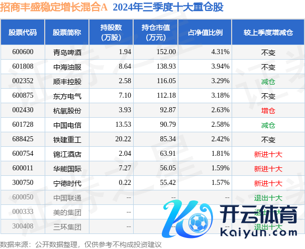 招商丰盛富厚增长混杂A为混杂型-生动基金,笔据最新一期基金季报显露,该基金财富成立:股票占净值比39.18%,债券占净值比27.91%,现款占净值比3.01%。基金十大重仓股如下: