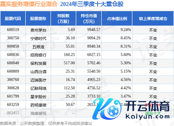 嘉实就业升值行业搀和为搀和型-无邪基金,左证最新一期基金季报披露,该基金财富成就:股票占净值比75.49%,无债券类财富,现款占净值比24.68%。基金十大重仓股如下: